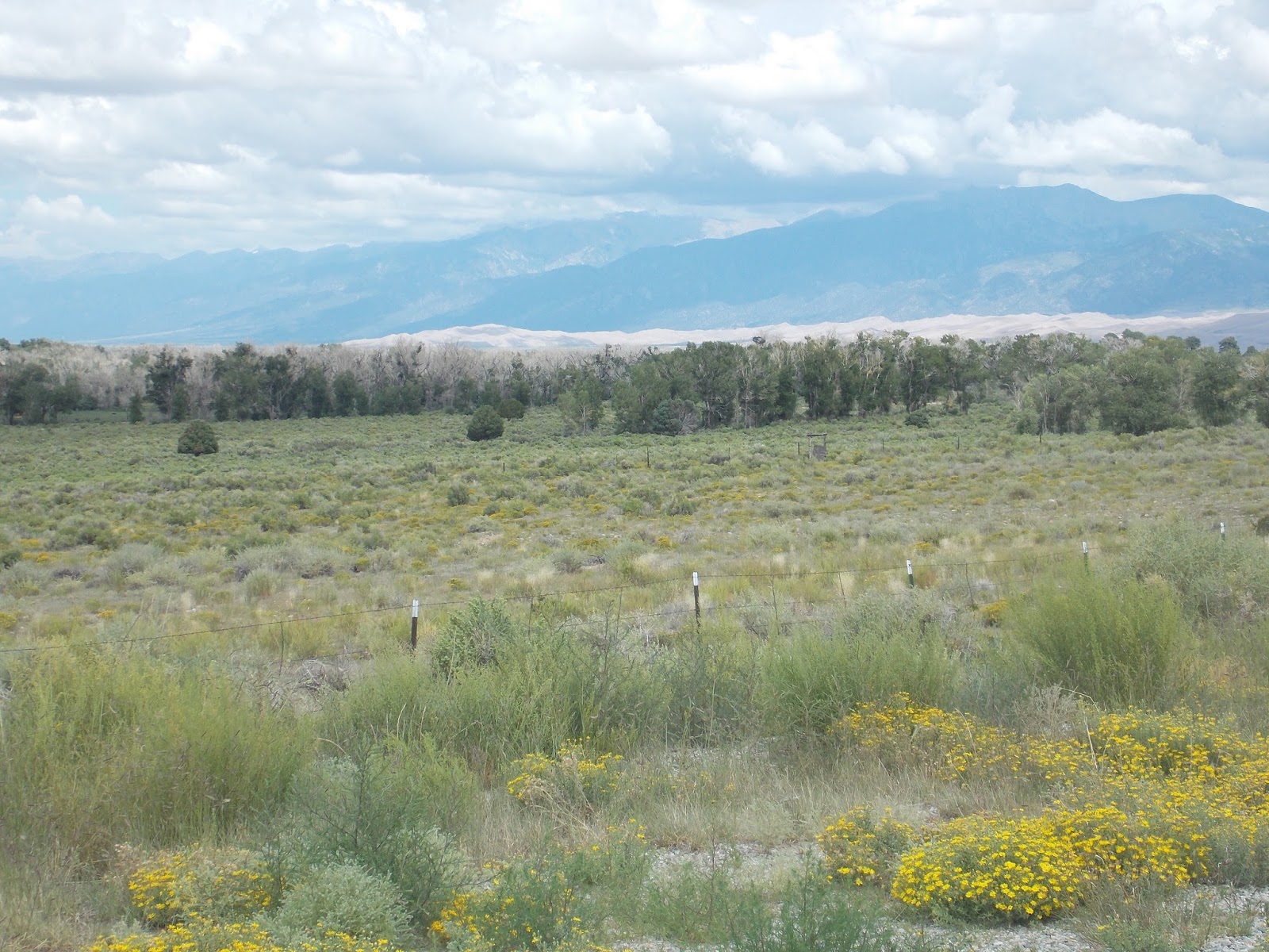 Thirty square miles of the dunes stretch to the north, south and west. According to a park brochure, the dunes were formed thousands of years ago with sand and and sediment which washed down from both the San Juan as well as Sangre de Cristo mountain ranges. Prevailing southwesterly winds bounced the sand grains to pile them up beneath the Sangre de Cristo Mountains. Prevailing northeasterly winds through the mountain passes caused the sand to pile back up on themselves thus creating very large dunes. They are the largest in North America, some as high as 750 feet.