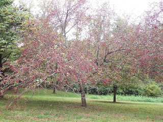 We had a beautiful fall day for touring the park. Mother Nature is still pretty with her colorful leaves which are now changing their colors, and many flowers are still in bloom as a frost has not happened as yet here in Missouri. The trees pictured above have red berries on them, not cherry blossoms- wrong season for that!